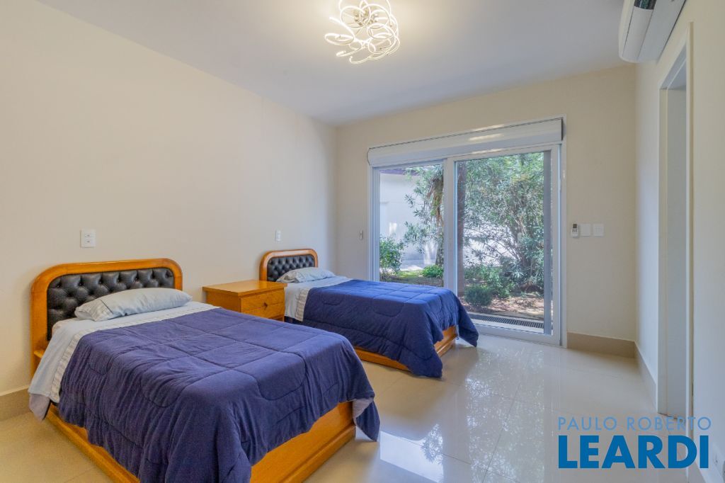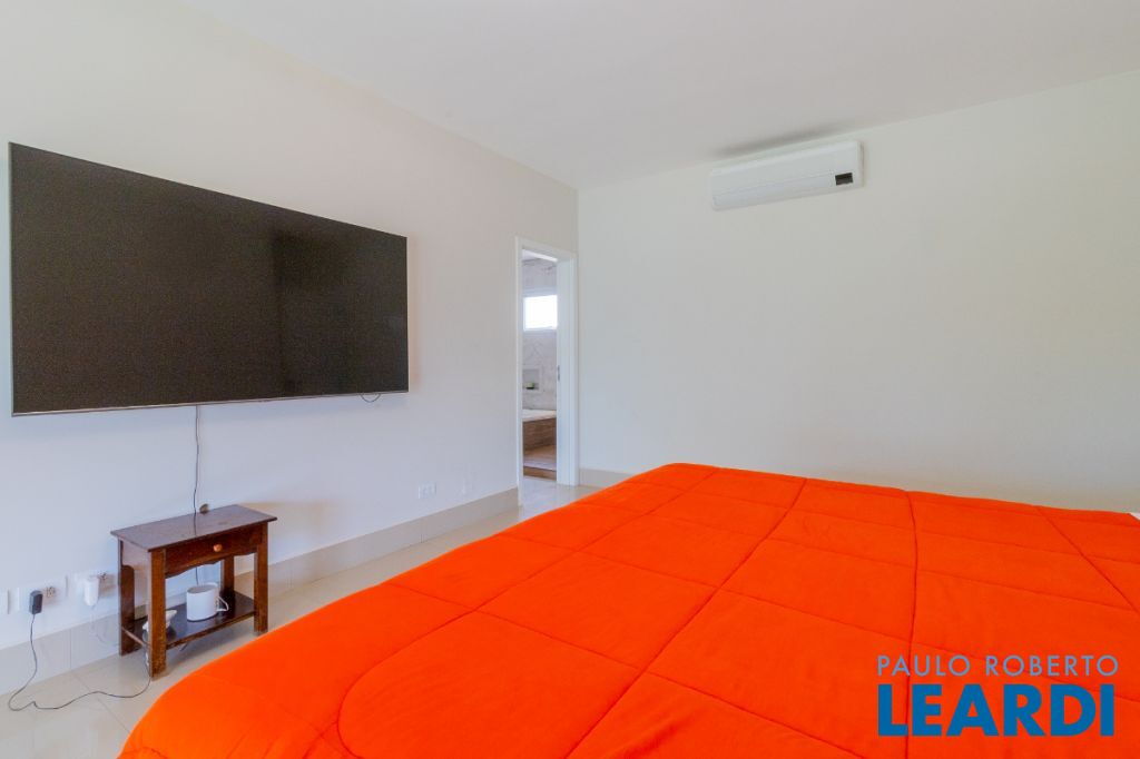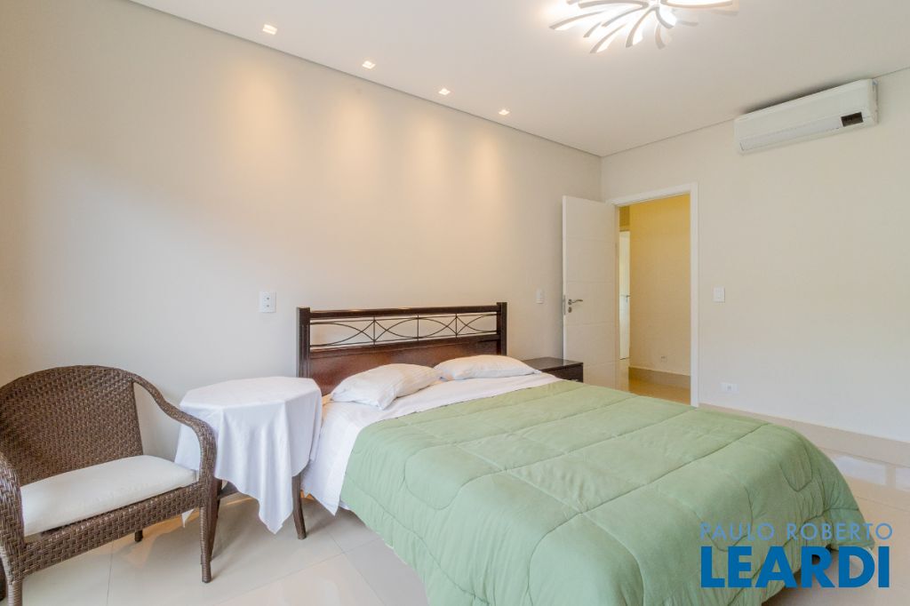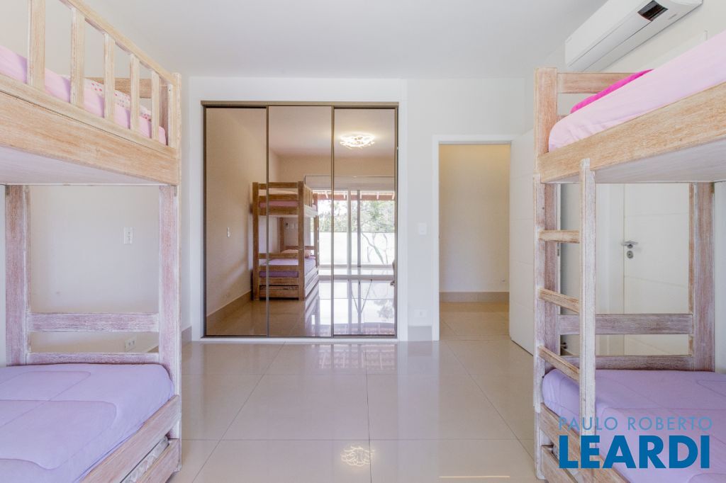 No pavimento superior, a área íntima dispõe de seis suítes amplas, todas equipadas com ar-condicionado e persianas automatizadas. Entre elas destacam-se duas suítes master com closet, sendo uma delas com hidromassagem, proporcionando ainda mais conforto e privacidade.