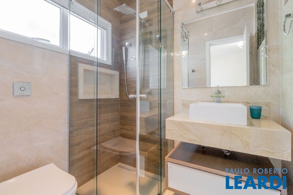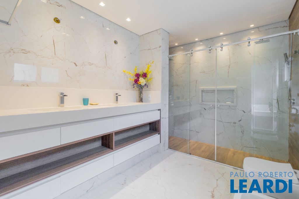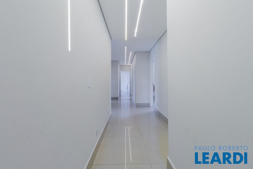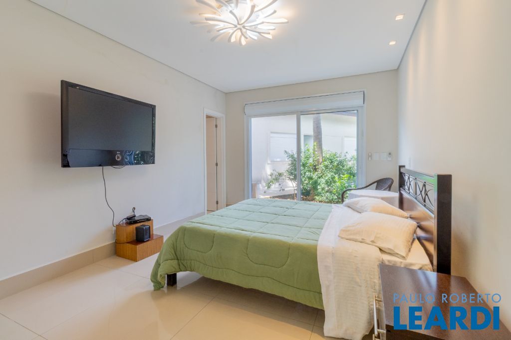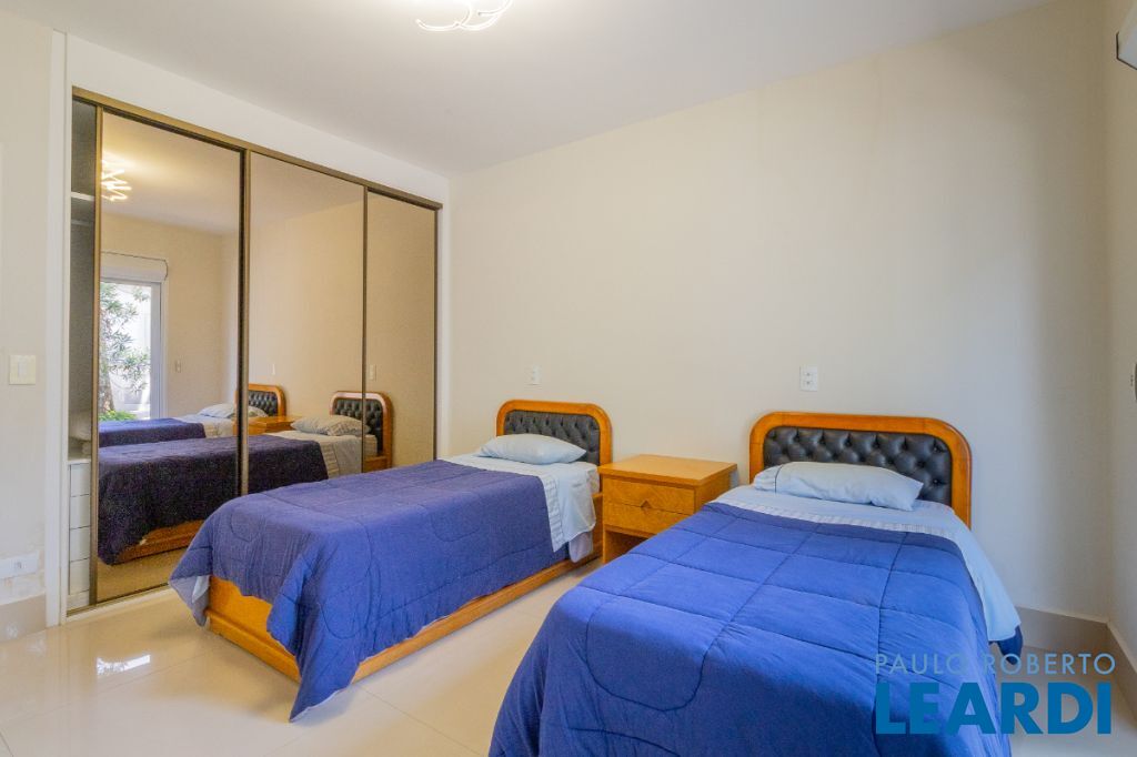 No pavimento superior, a área íntima dispõe de seis suítes amplas, todas equipadas com ar-condicionado e persianas automatizadas. Entre elas destacam-se duas suítes master com closet, sendo uma delas com hidromassagem, proporcionando ainda mais conforto e privacidade.