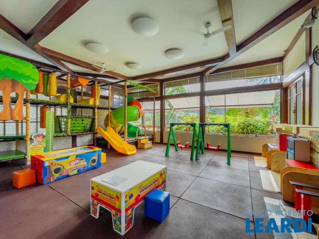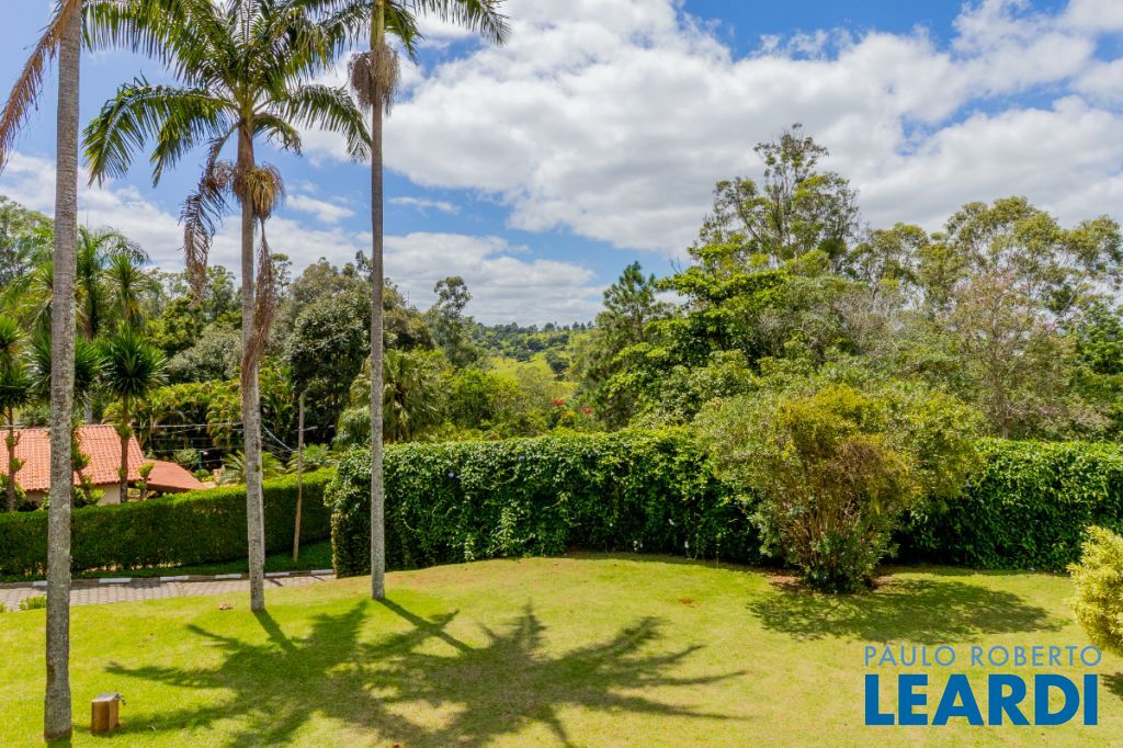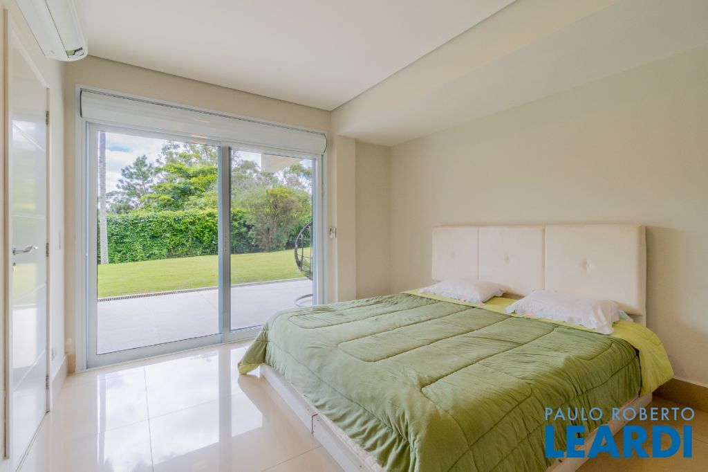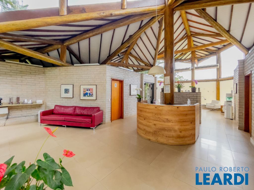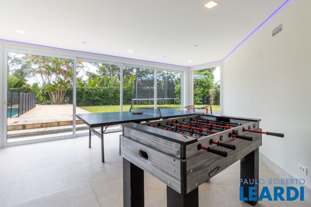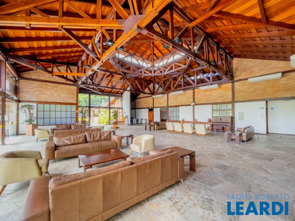 Ainda neste andar encontra-se a elegante área social principal da residência, composta por uma sala de estar e sala de jantar extremamente amplas. A sala de estar possui pé-direito duplo, trazendo imponência e grande amplitude ao ambiente. As amplas janelas emolduram a paisagem natural ao redor da casa, criando a sensação de um verdadeiro quadro vivo da natureza. O ambiente conta também com varanda integrada.