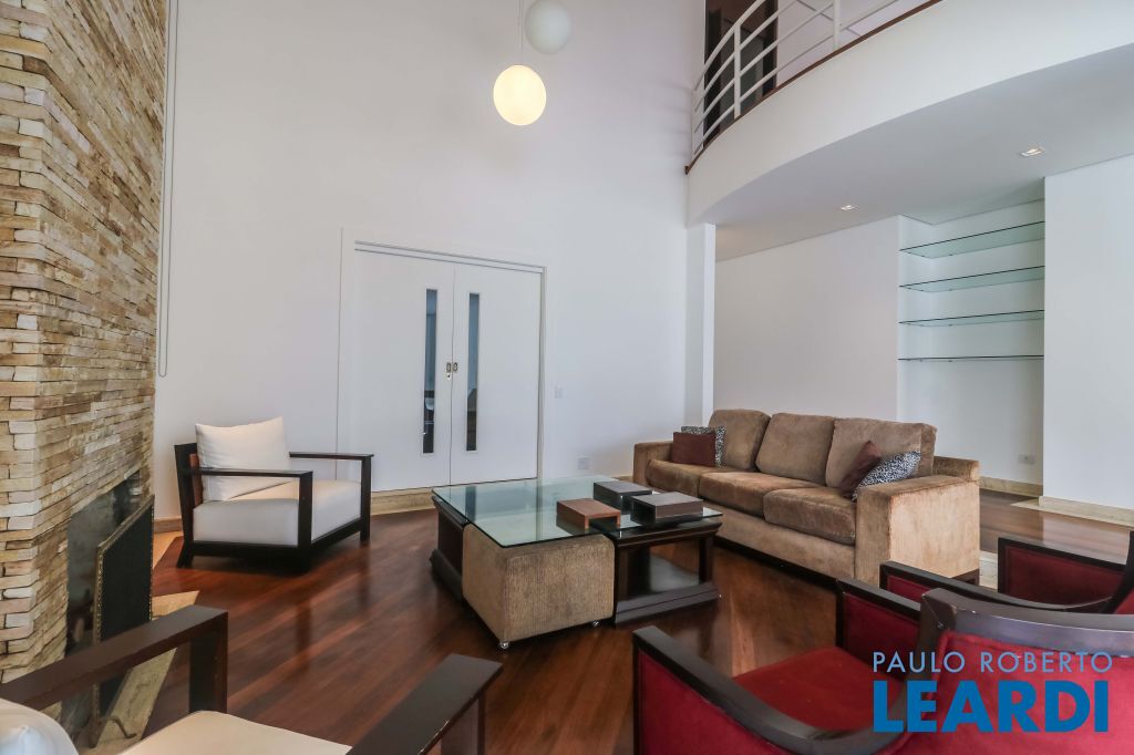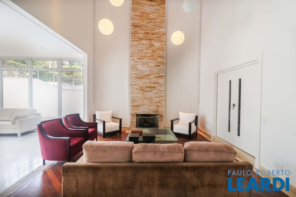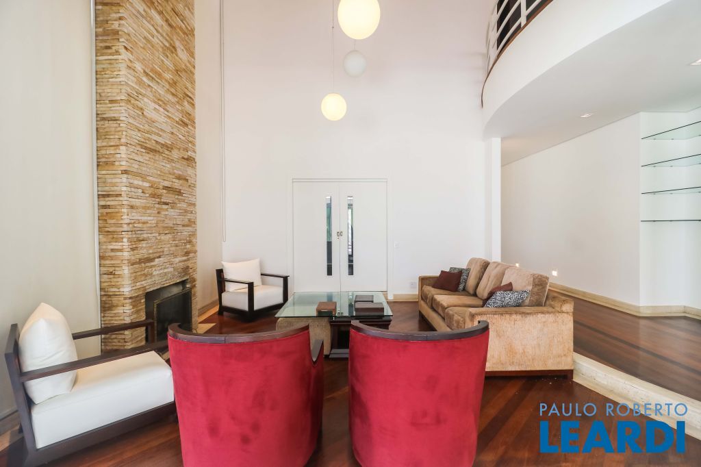 Sala de lareira com pé direito duplo