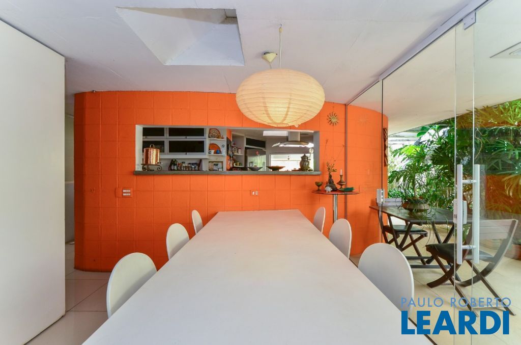 A casa possui 367 m² de área construída e 500 m² de terreno. Os espaços são distribuídos em sala de estar e jantar integradas com muita iluminação natural e uma lareira moderna, 3 dormitórios, sendo 1 suíte, 4 banheiros, sala de estar e jantar integradas com muita iluminação natural e uma lareira moderna. Cozinha com balcão de estilo americano, e como é característico dos projetos do grande arquiteto Ruy Ohtake, este local que propõe fascinantes alquimias gastronômicas, tem um formato circular, que lembra as formas fluidas ligadas aos círculos Enso, que simbolizam a iluminação, a força, a elegância, o universo e o vazio. Os quartos são muito bem distribuídos, iluminados e arejados devido a ventilação cruzada e a localização da casa neste bairro verde.1512