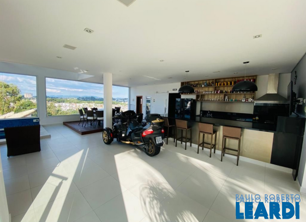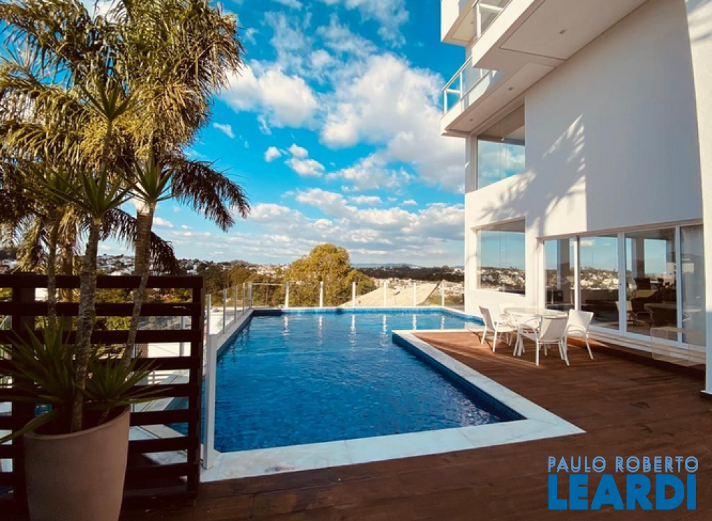 Amplitude, beleza e bem estar localizada no condomínio Aruja 5 , construida em dois lotes com uma metragem diferenciada, Casa Assobradada contendo quatro suites todas com closets, sala intima, Sala de estar, sala de jantar, sala lareira totalmente avarandada. Piscina com prainha aquecida Sala de jogos