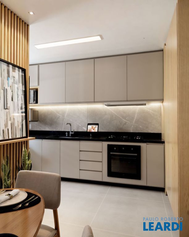 Cozinha bem distribuída e área de serviço prática.