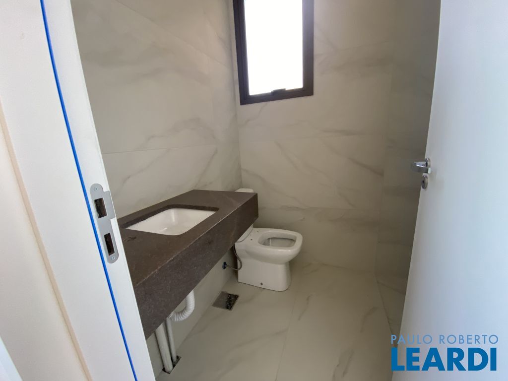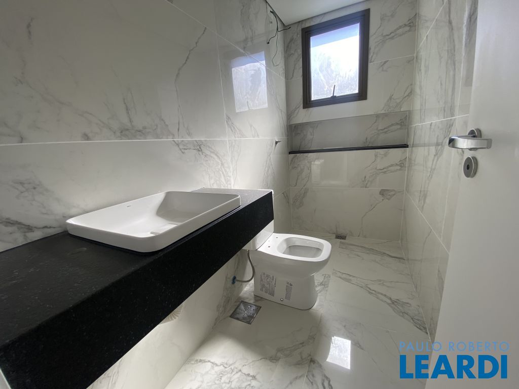 Banheiros com acabamento sofisticado, bancada em granito e louças modernas;