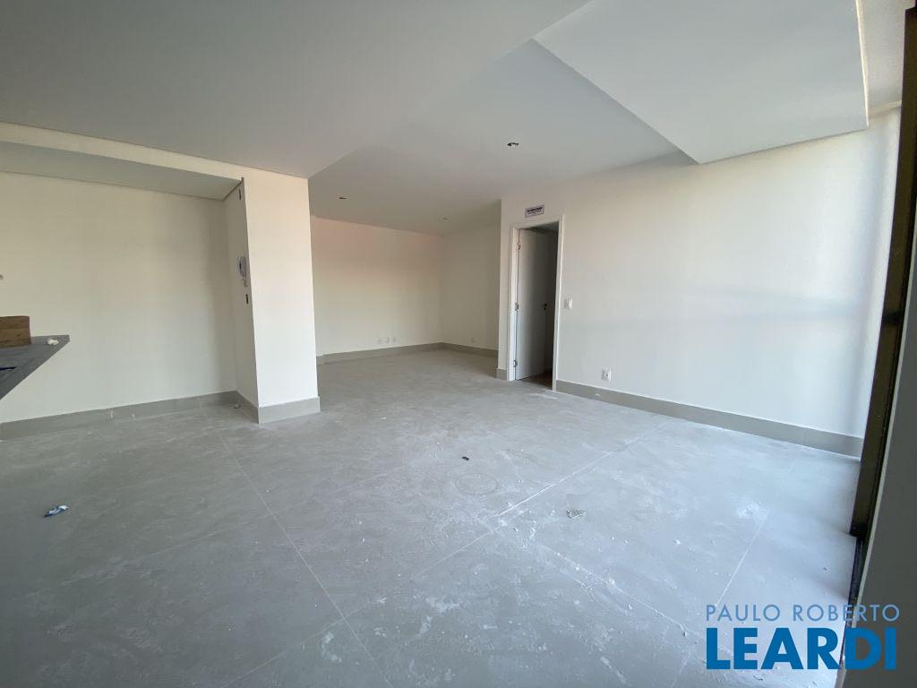 Sala ampla em conceito aberto, com integração à varanda e acesso direto à área externa;